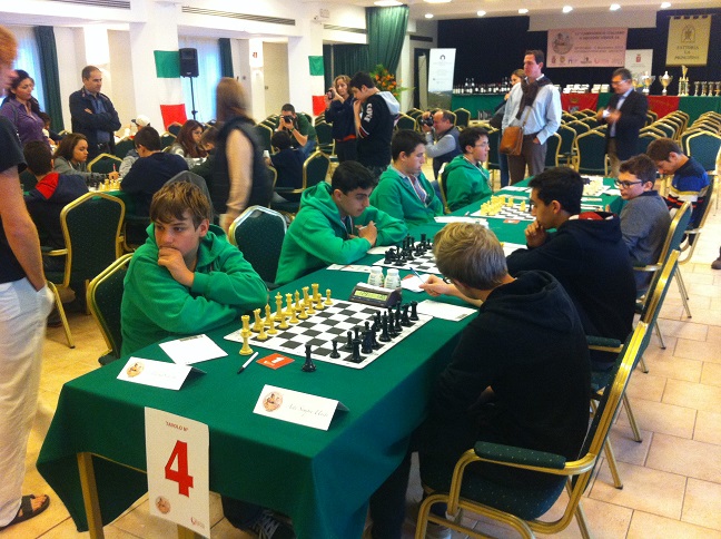 02/11/2014 PALMASCACCHI V° classificati ai CAMPIONATI ITALIANI ASSOLUTI a Squadre UNDER 16 Siamo orgogliosi di voi! Jurij, Giorgio (arrivato terzo tra le seconde scacchiere!!!), Paolo ed Andrea complimenti da parte di tutto il circolo! Bravissimi! Non era facile partire 7° in tabellone e confermarsi, invece i nostri ragazzi sono arrivati addirittura quinti assoluti in una manifestazione che contava 166 partecipanti suddivisi in 35 squadre. |