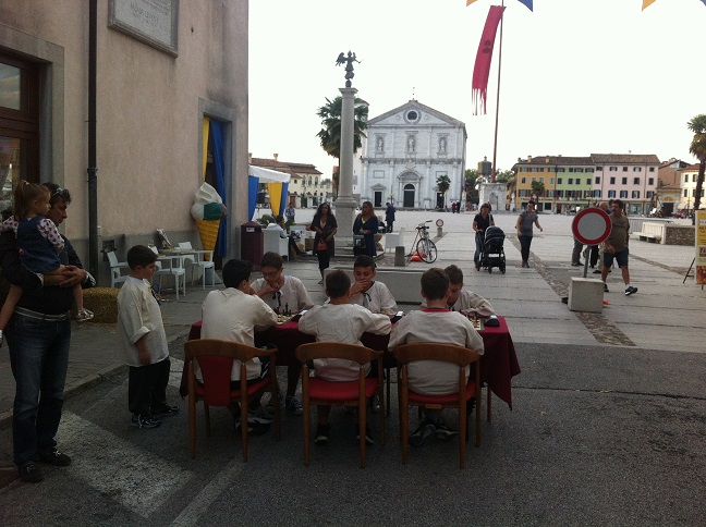 05/10/2014 Settimo Semilampo Under 16 a Palmanova Concluso l'annuale appuntamento del semilampo Under 16 nel salone al piano terra del Palazzo Comunale in Piazza Grande. Vince Jurij Zamar, secondo e terzo classificato Tine e Spela Markocic, bene anche Sasa Kobal (quarto) e Mauro Pauletto (quinto) venuto a giocare dall'Austria!