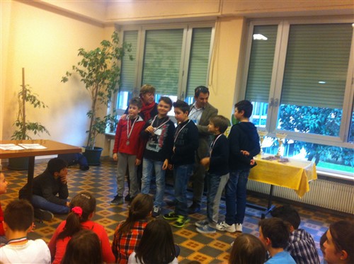 28/02/2015 - Le Aquile vincono il campionato provinciale studentesco 2015!!!! La Squadra delle "Aquile" della Scuola Elementare Dante di Palmanova ha vinto il Campionato Provinciale Studentesco giocato oggi al Bertoni di Udine con 9 punti su 10 e si qualifica per le Finali Regionali. Complimenti a Federico SESTILI, Marco e Saverio CRISCUOLO , Filippo GHINI e Riccardo RUSSO !!! Bravi Campioni, avanti cosμ !!!!!! |